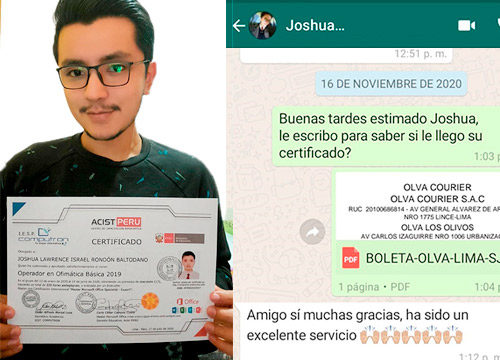El certificado se entrega en formato digital con código QR y también en versión física, garantizando su validez y reconocimiento. (se envía por la agencia Olva Courier).