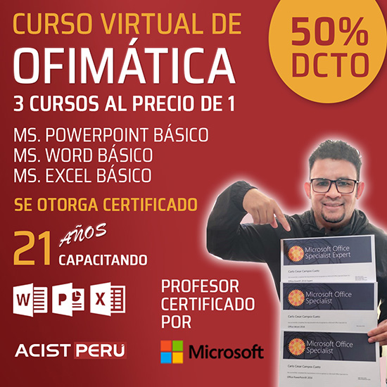 Acist Perú, con 21 años de experiencia en el sector educativo, en convenio con Instituciones Reconocidas y con el respaldo de Profesionales Certificados por Microsoft, pone a tu disposición el Curso Virtual de Ofimática Nivel Básico.